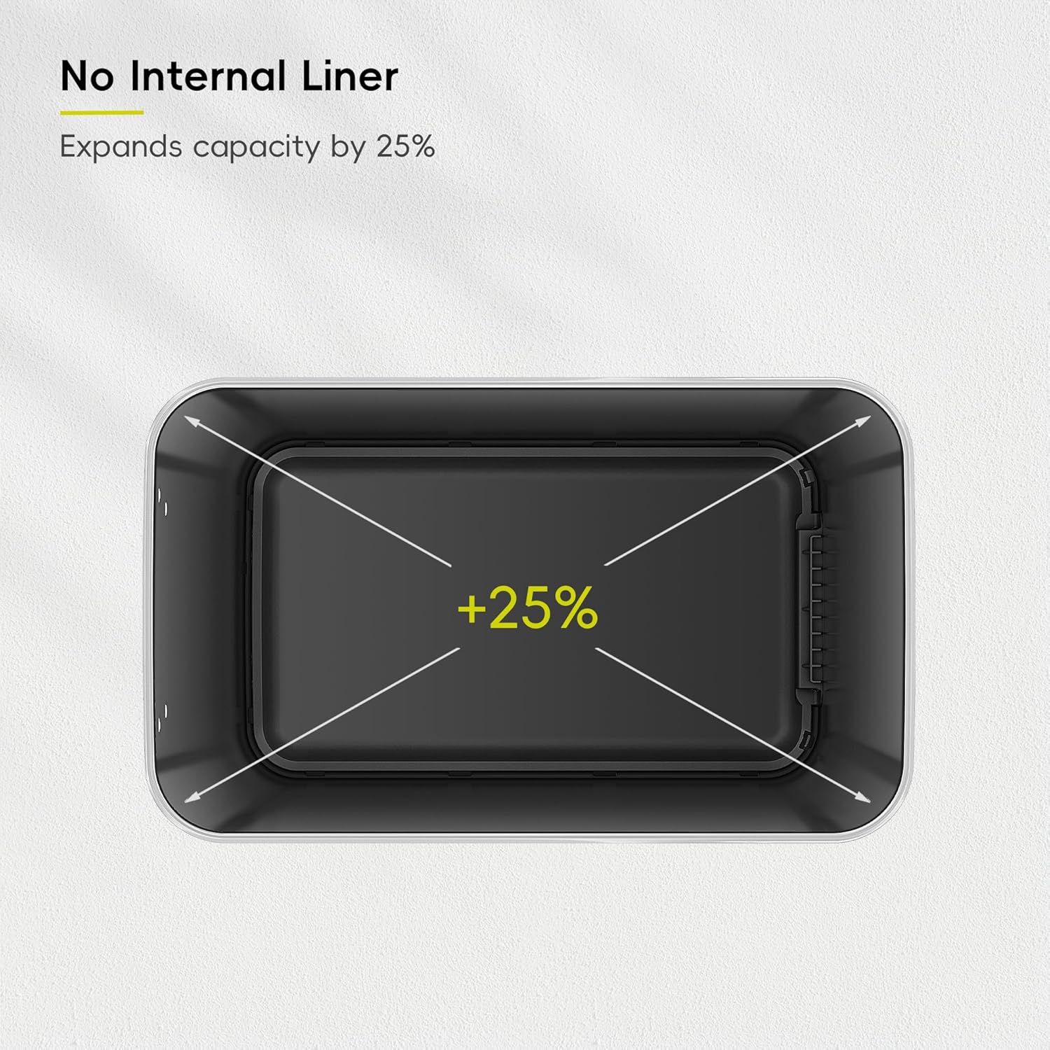 - 25% More Capacity - The liner-free design removes the bulky inner bucket to free up space, giving you up to 25% more room for wasteβperfect for busy kitchens and households with frequent trash use