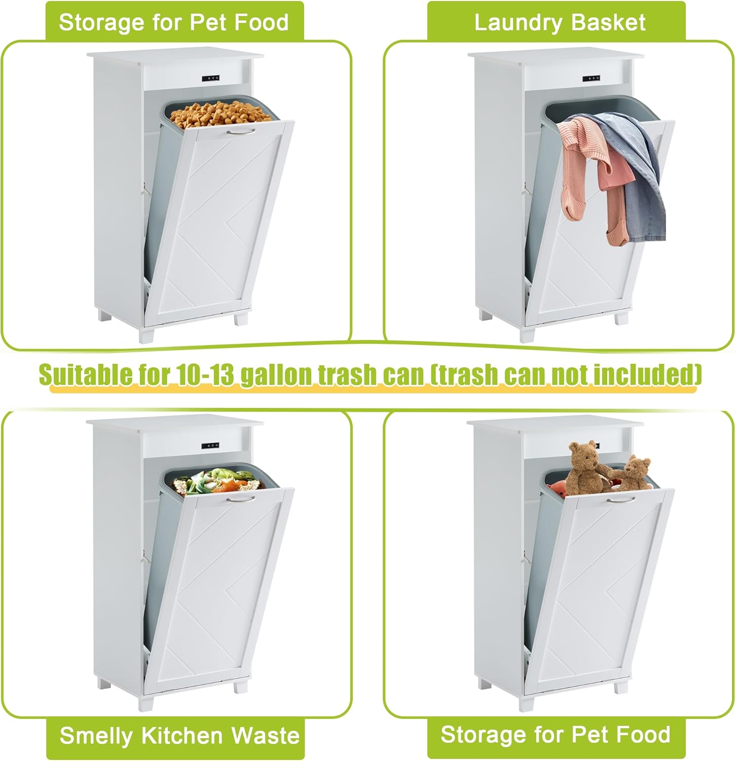 - γVersatile Cabinet Trash CanγWith pull-out drawers, this hidden trash can is perfect for kitchen, home, apartment, dormitory, laundry room. You can store kitchen waste, kitchen supplies, pet food, and more. Our hamper cabinet can be used as white laundry cabinet, the top is good for displaying decorations and daily essentials.