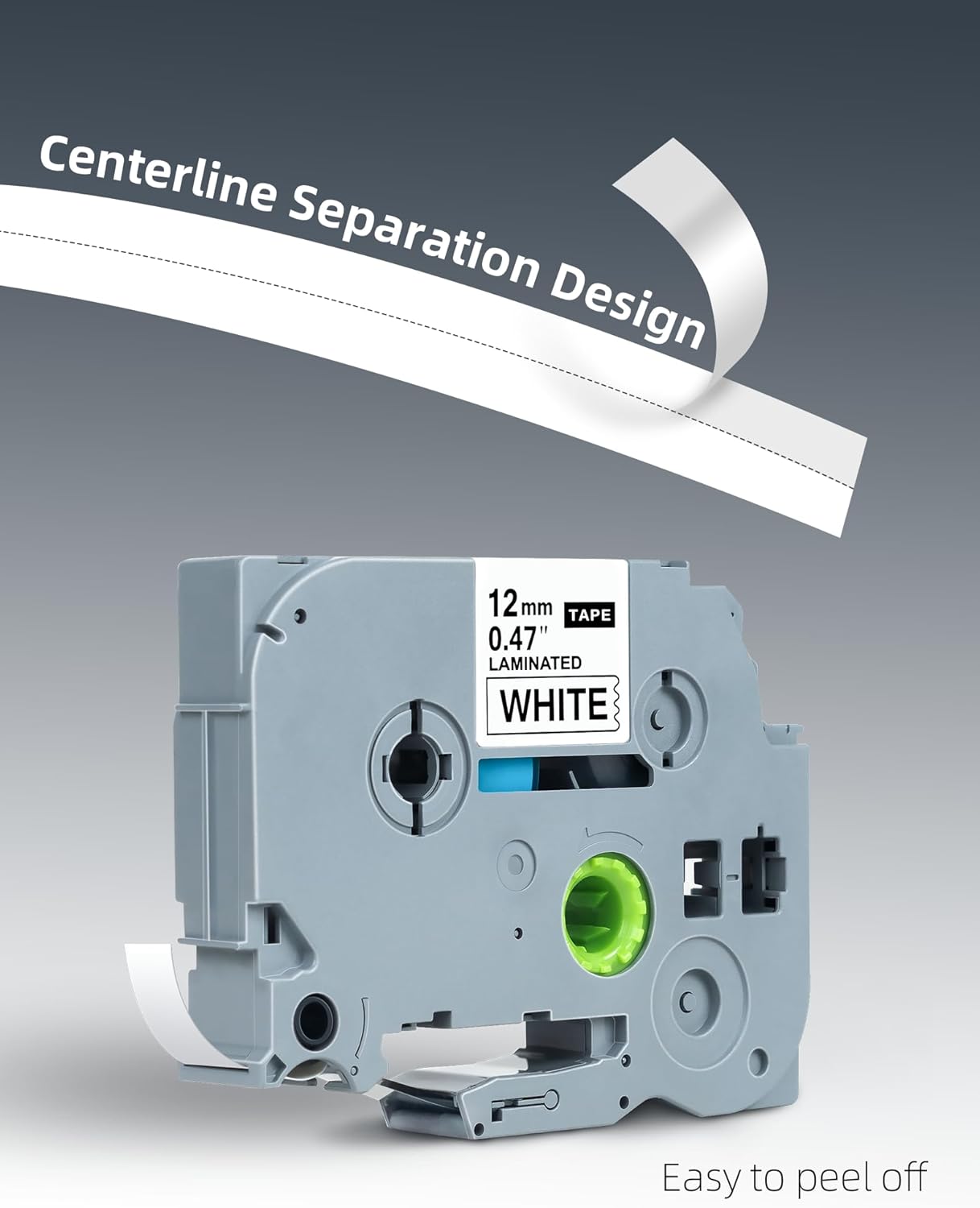 - Split Backing Design: The backing tape is split lengthways in the middle for easy peeling. These replacement for brother label maker tape 12mm 0.47 white tapes will be good helper for your home and office labeling tasks.