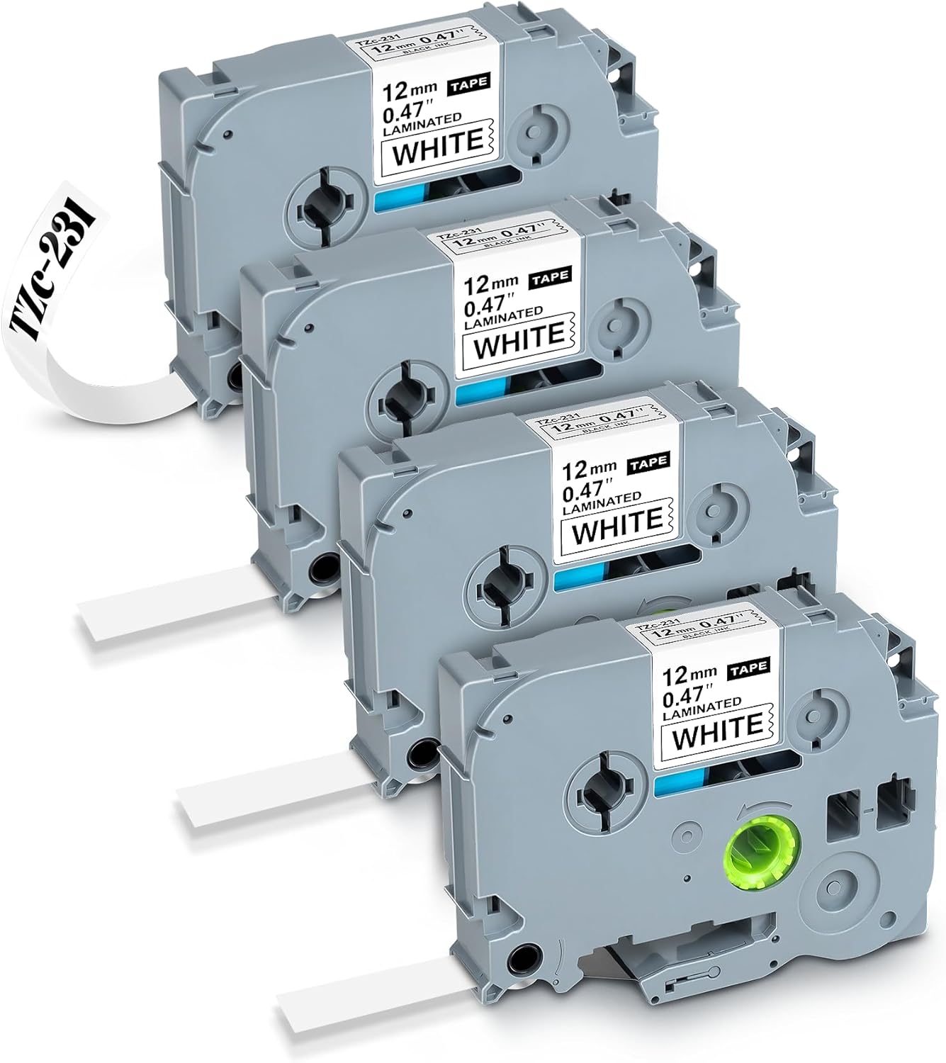 - Product Information: 4-Pack Replacement for brother label maker tape, Color: Black Ink on White Tape, Width: 0.47 Inch (12mm), Length: 26.2 Feet (8m).