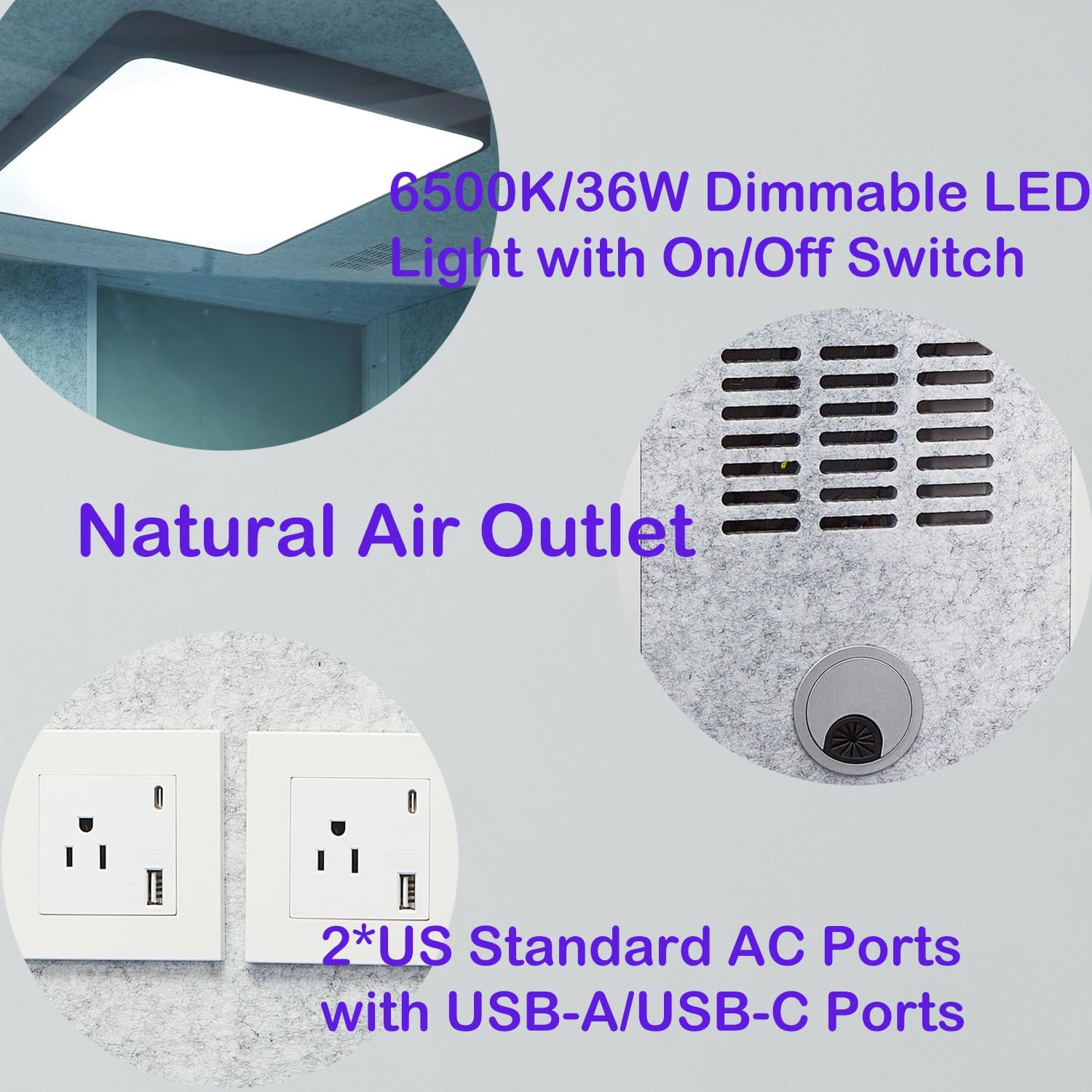 Mobile Office Pod Booth, Sound Pod, Large Space SoundProof Pod 2-4 People, Sound Booth Mobile Roller, LED Lighting, Centrifugal Fans and AC USB Ports - for 2-4 Persons White