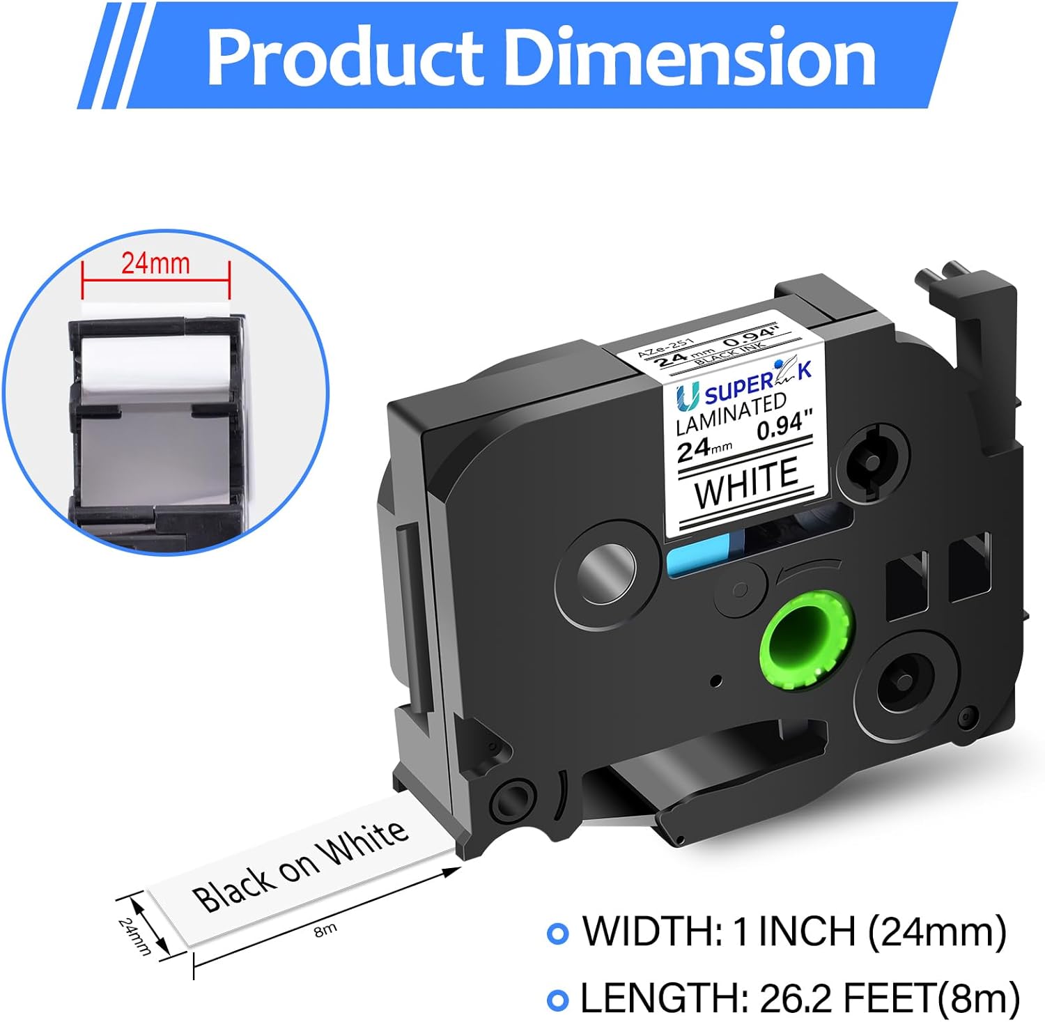 - USUPERINK compatible for Brother p-touch label tape TZe-251 TZe251 TZ-251 TZ251 AZe-251 1 inch 25mm 0.94'' laminated white tape