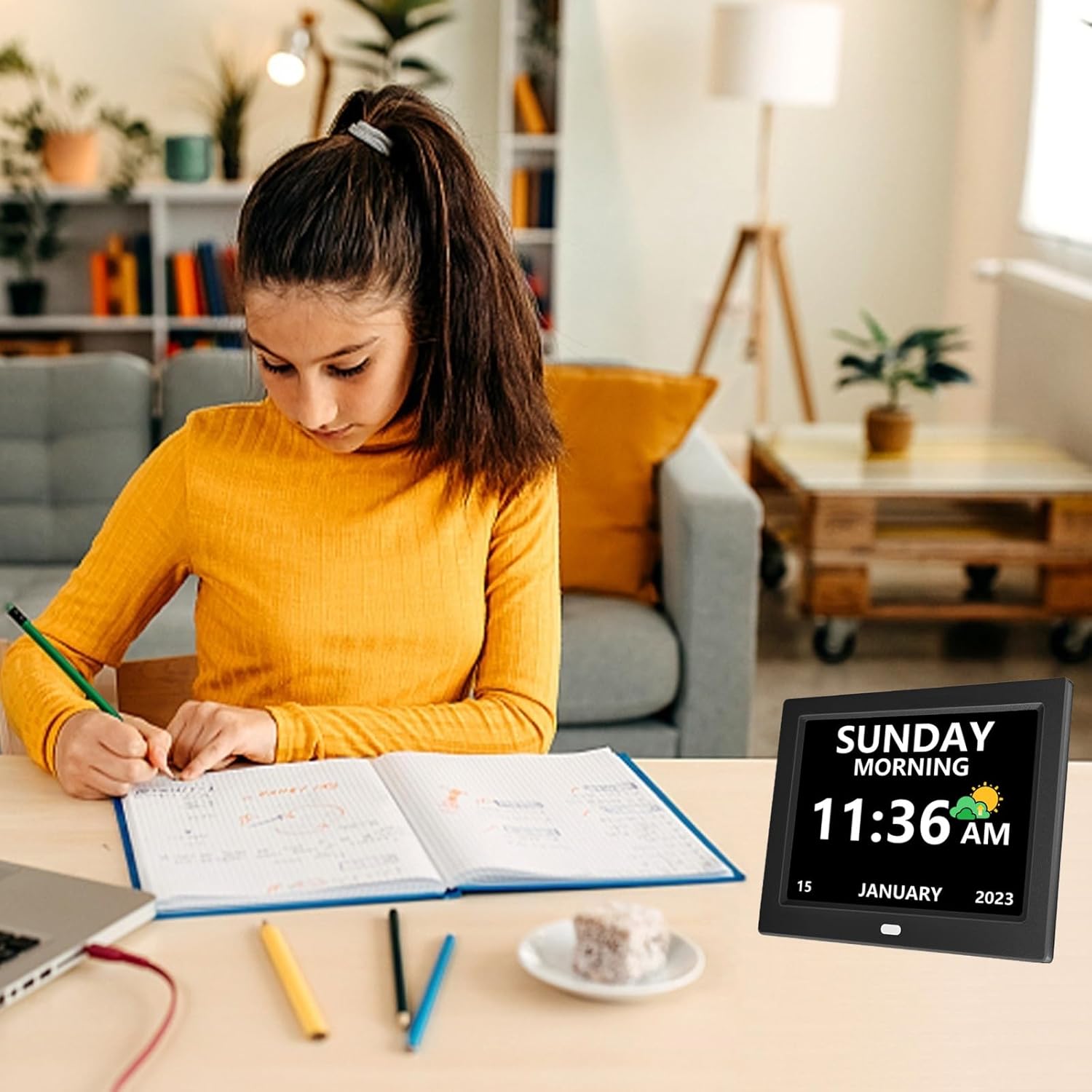- 【Easy to Read】The digital clock for elderly has a 7-inch display that clearly displays the time, date, day of the week, four time periods of the day [morning, afternoon, evening, night], and displays the ICONS of each time period, non-abbreviated large font helps the elderly easily read the time