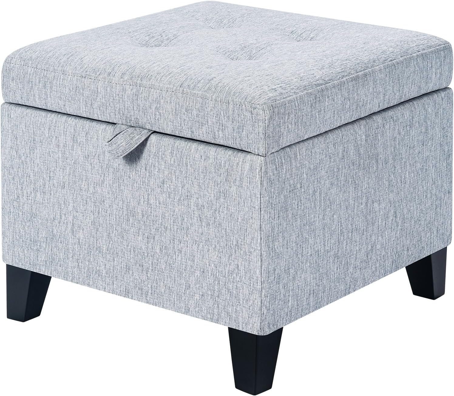 Adeco 18 Inch High Cube Ottoman Storage, Linen Chair Foot Stools, Upholstered Vanity Stool with Hinged Lid, Solid Wood Legs