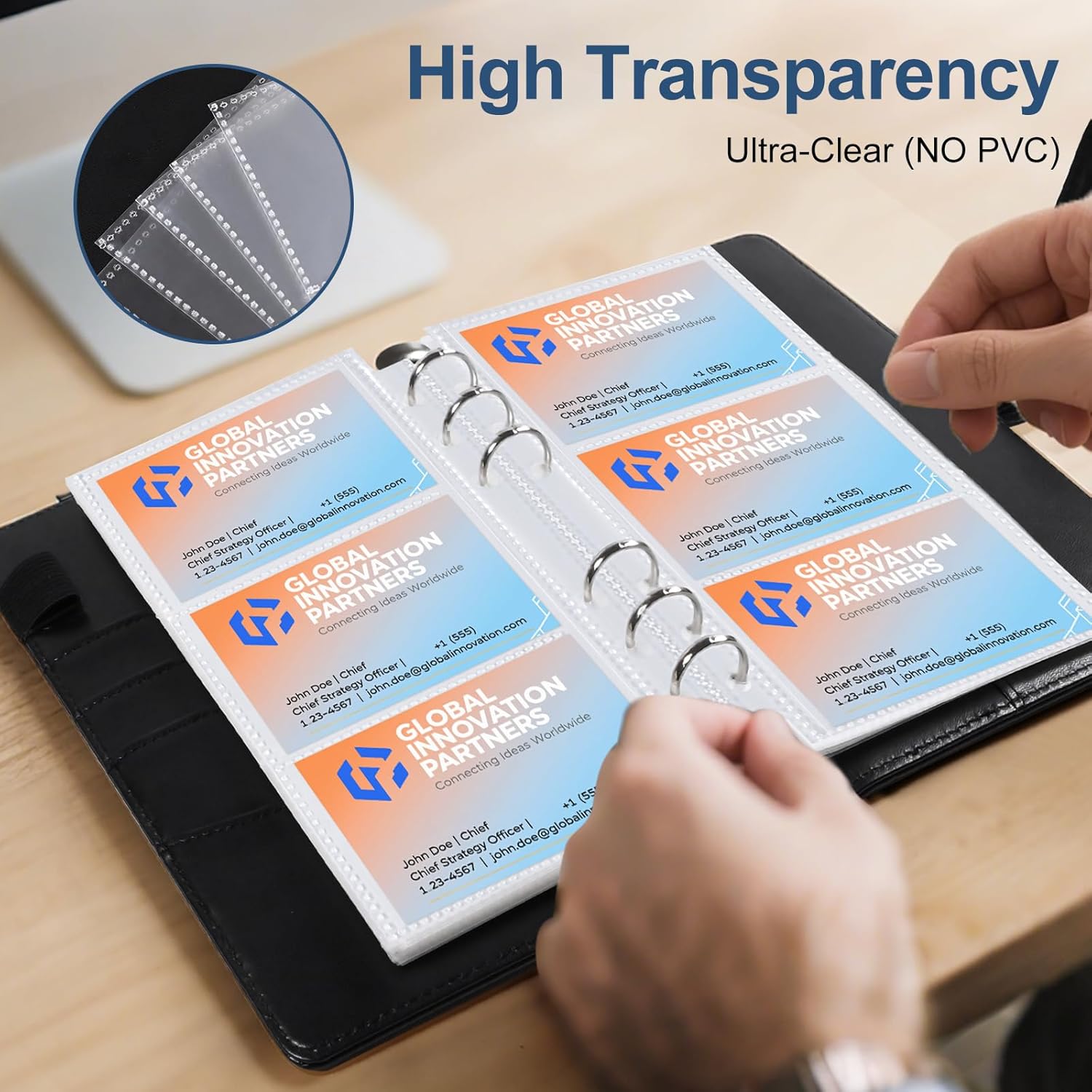 - [High-Transparency & Secure Display]: Crafted from non-toxic, PVC-free, this business card book ensures safe storage while offering exceptional clarity for easy card viewing and presentation. The side-loading pockets allow convenient access and keep cards securely in place without removal