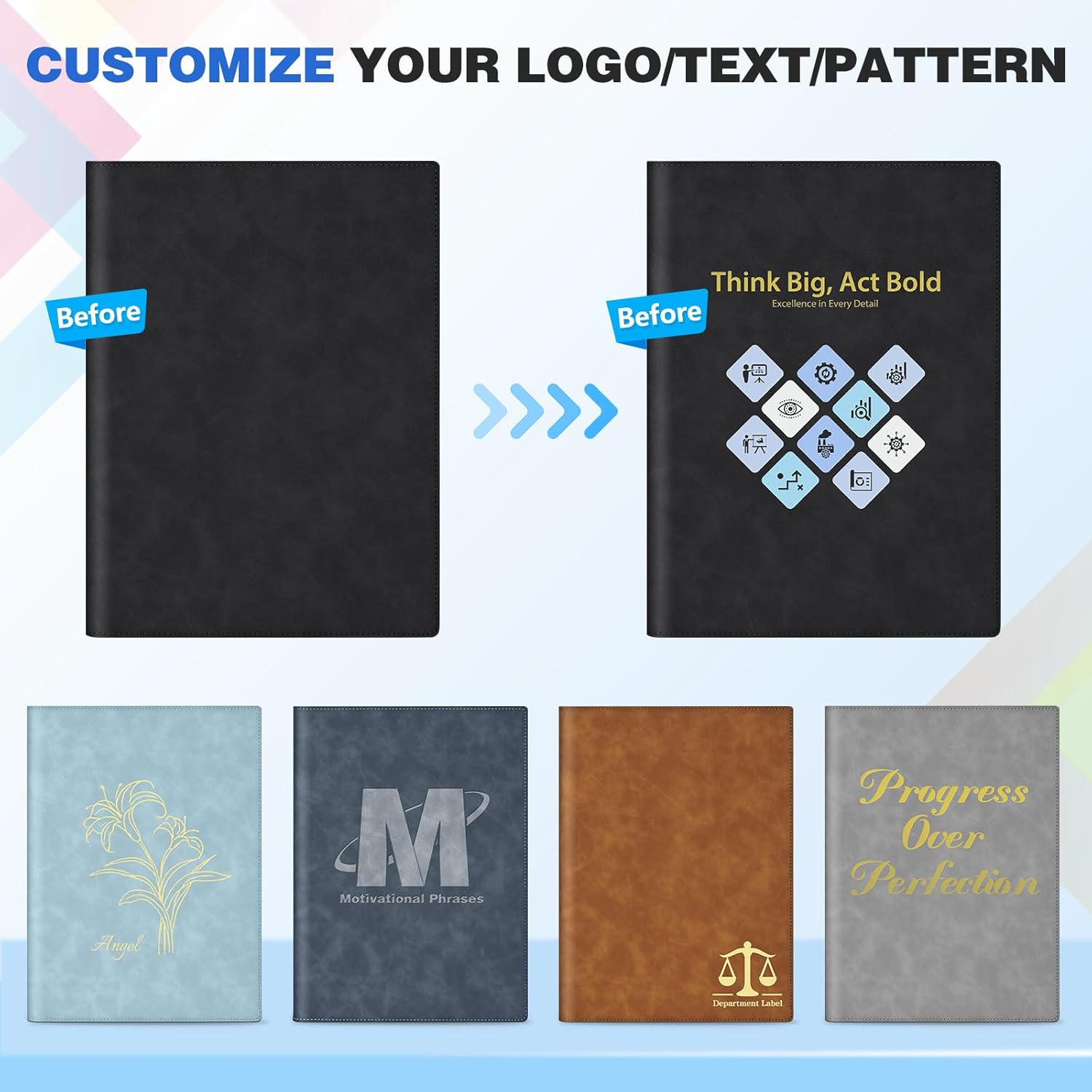 - 【Professional Customization】With professional personalized touches, a basic padfolio transforms into an exclusive keepsake. Whether you add logos, motivational phrases, custom artwork, or meaningful names and dates, each unique detail crafts a portfolio that truly embodies your individuality or brand essence.