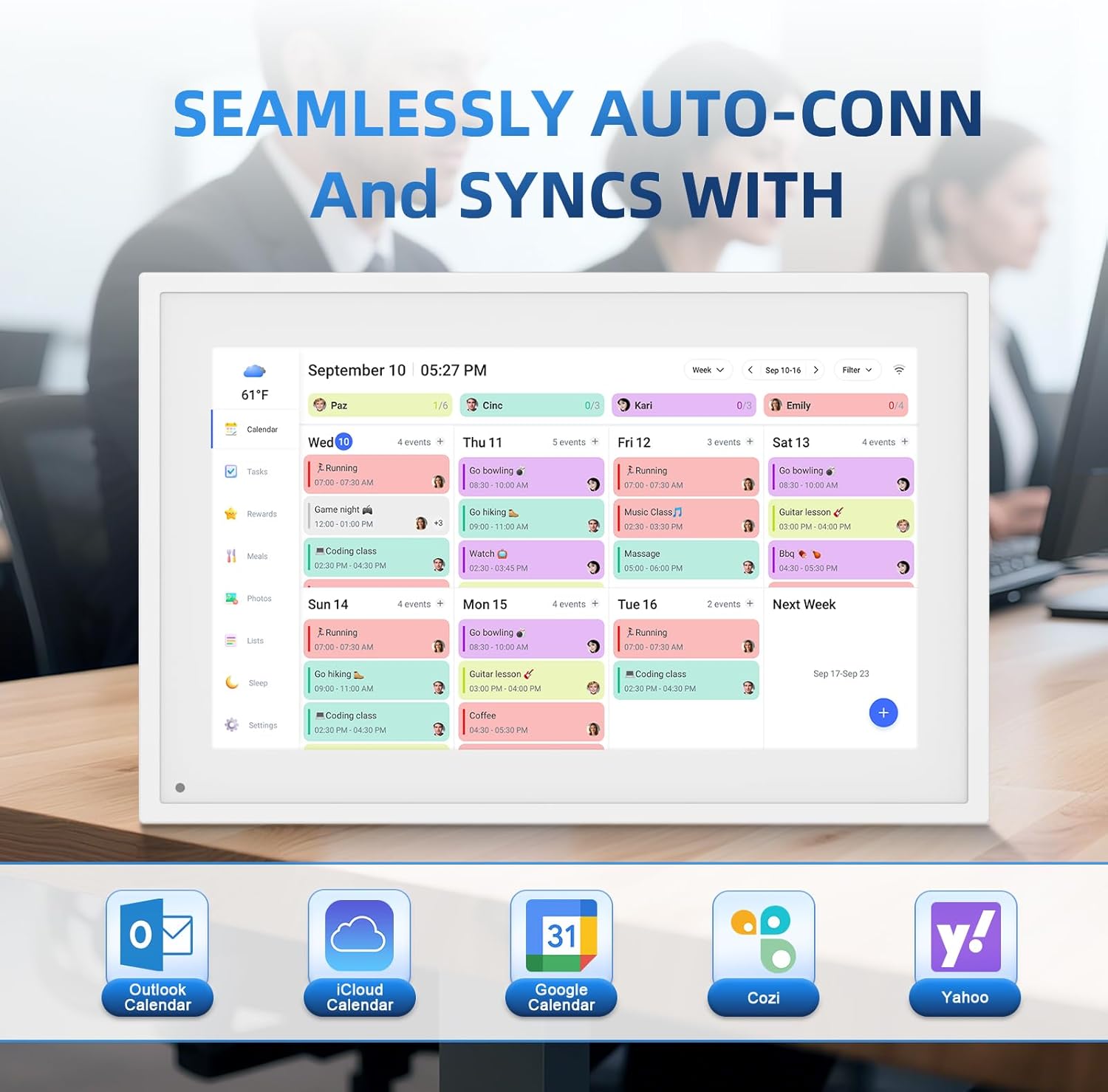 - 2️⃣ 【🖐️ 10.1" Touch Screen Digital Calendar Planner】Enjoy crystal-clear viewing on the responsive digital calendar touch screen. Includes adjustable stand for perfect placement as a desk calendar in kitchens, home offices, or family rooms. Sets up in minutes!
