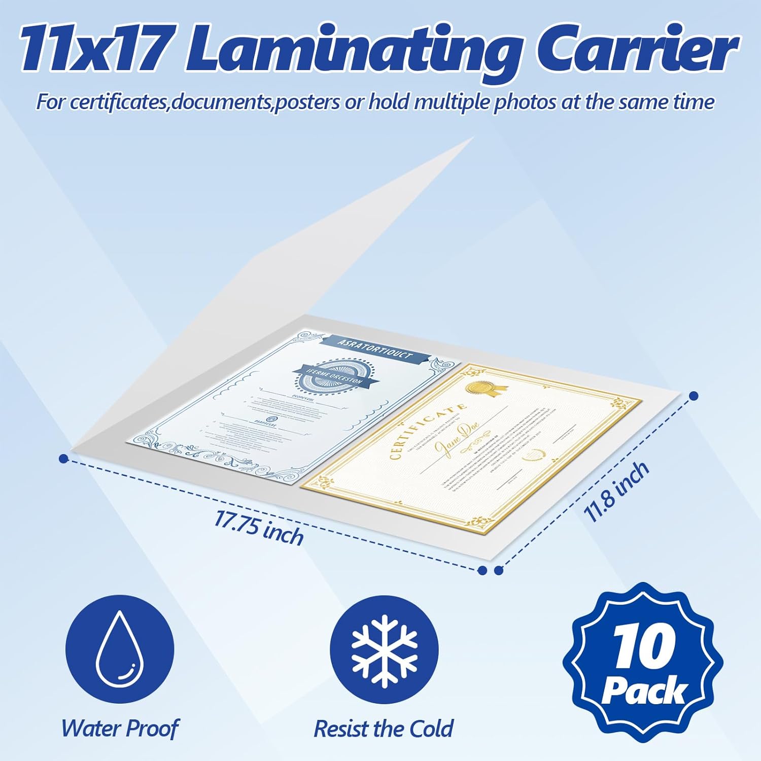 10 Pack ID Card Size Laminator Carrier Sleeve 11.75X17.75 Inch Thermal Laminating Carriers Sheets Protection Thermal for All Brand Laminating Pouches Work Permits Pass Cards Student ID Cards