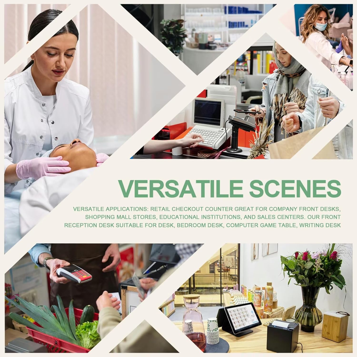 - β VERSATILE APPLICATION: Standing reception desk cashier counter fits anywhere. More than as a check out counter, reception room tables place it in a law office, restaurant or grocey store for boutique shops or even a computer desk in a workstation.